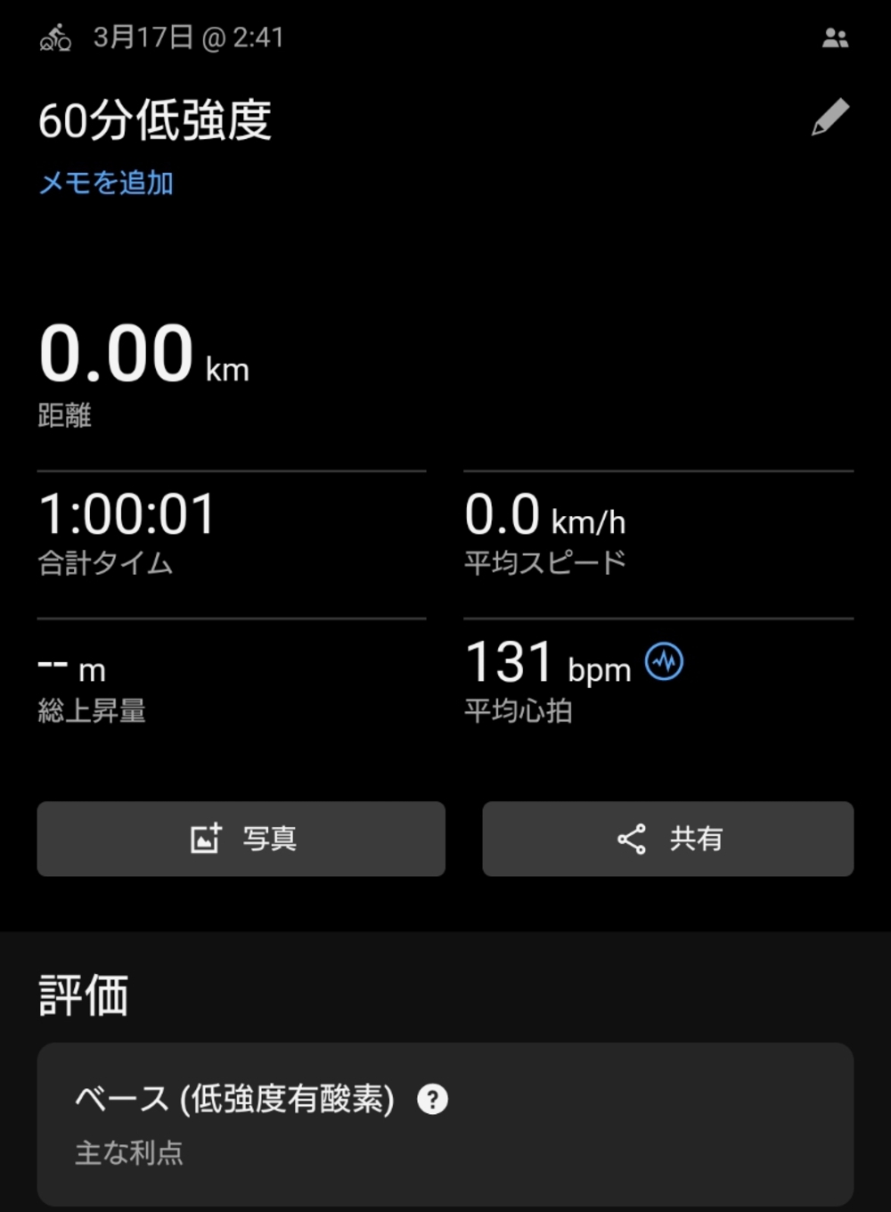 今日は家チャリで60分低強度🚴 心拍数130bpmを維持するだけですが、感覚としてはMペースでのペース走並にキツイ🤣 チャリトレはほんとメンタルトレーニングですわ これなら6:20/kmでのんびり走る方がいいのですが、膝が終わっている以上耐え抜くしかないですね😅続きを読む