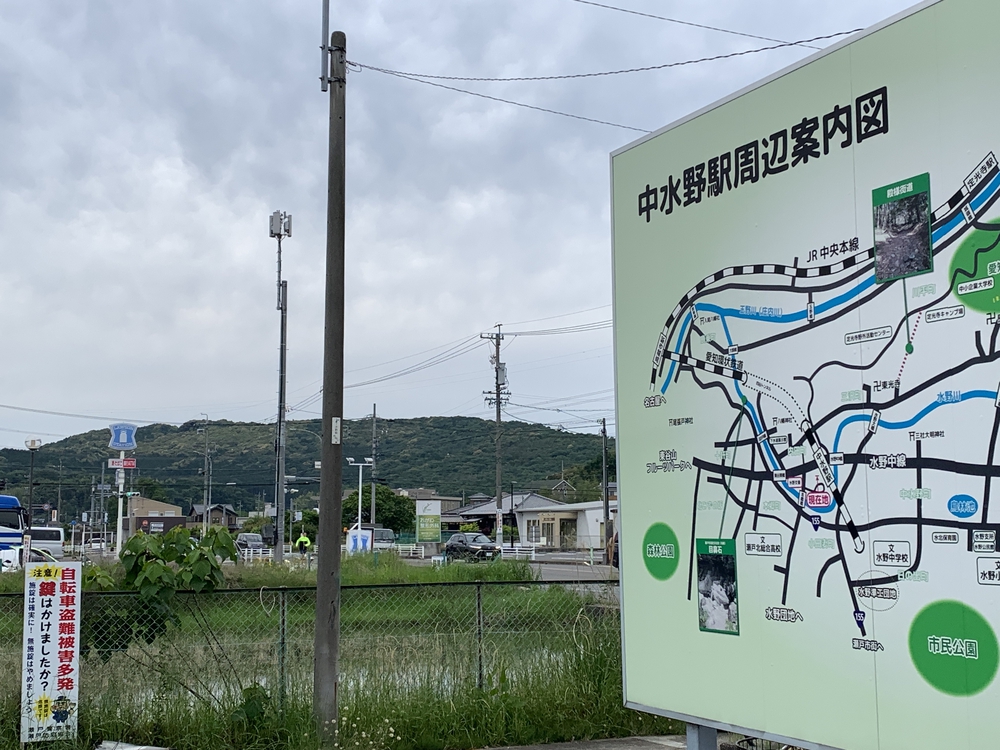 ゴール地点・大曽根のコインロッカーに「温泉後の着替え」を預け、電車で高蔵寺を経て出発点の中水野駅:瀬戸市へ到着。古墳・神社も備わる歴史ある東谷山にはハイキングコースが整備されていますが、登り易さ&アクセスを踏まえ東側からのアプローチを選択。その登山口「尾張戸神社鳥居」へは案内看板もあり、分かり易い道です。