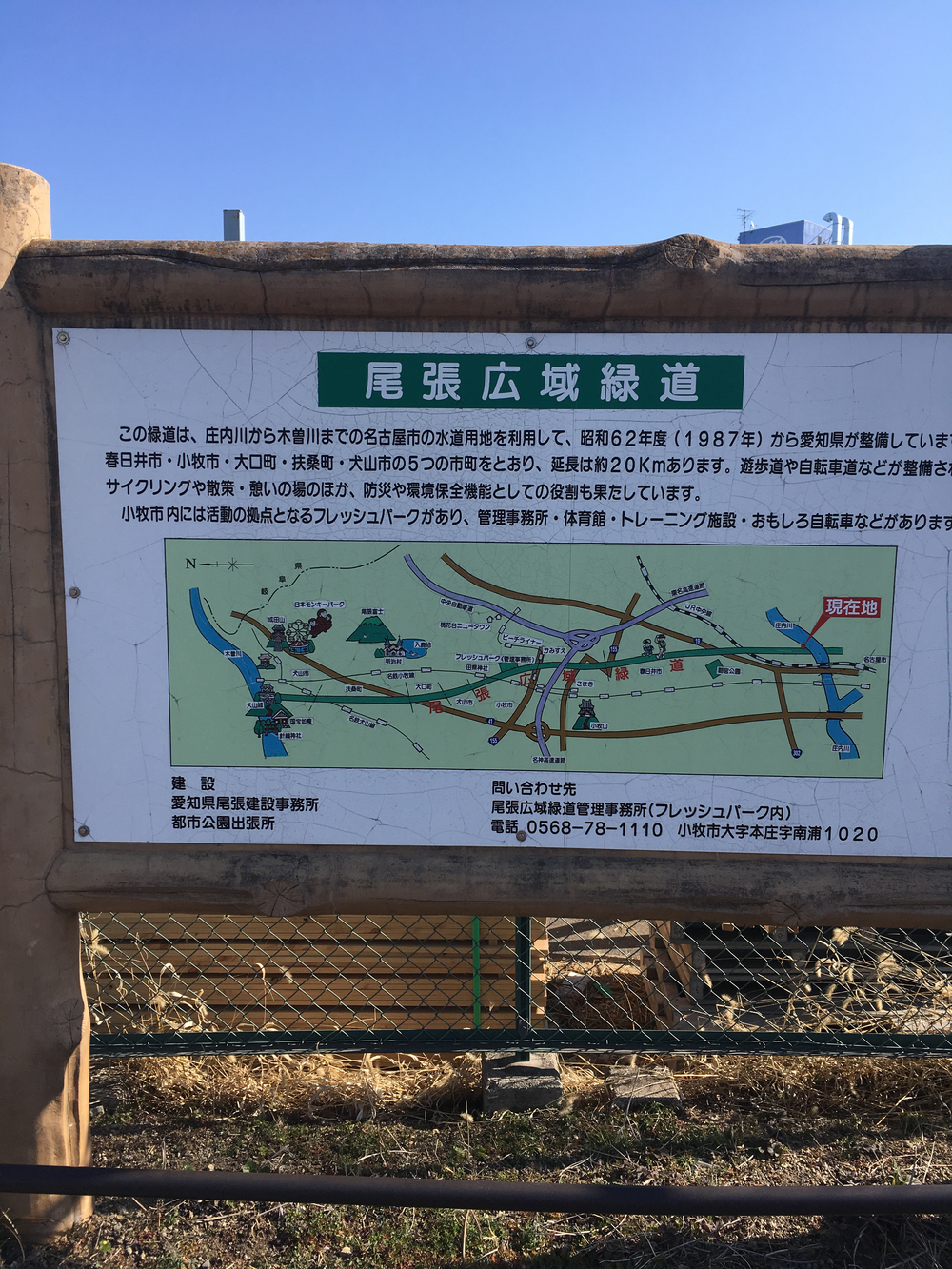 春日井市の庄内川から犬山市の木曽川まで、愛知・尾張地域の5市町を南北に貫く長い公園"尾張広域緑道"