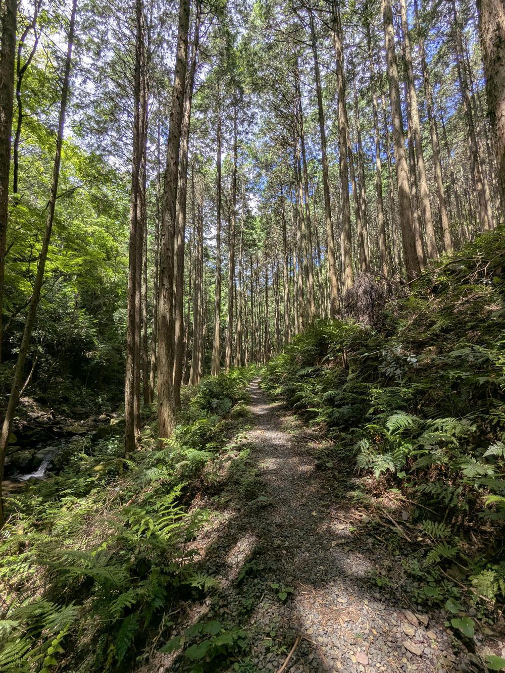 入鹿池脇から林道(東海自然歩道)に入っていくハイキングコース。直射日光のきつい夏の時期のランに最適な林道の木陰を走ることができます。小川に沿って林道が続いているので川の涼も感じることができ起伏も少ないです。写真では分かりづらいですが、八曽滝はなかなかの迫力。週末でも人はほとんどいません。