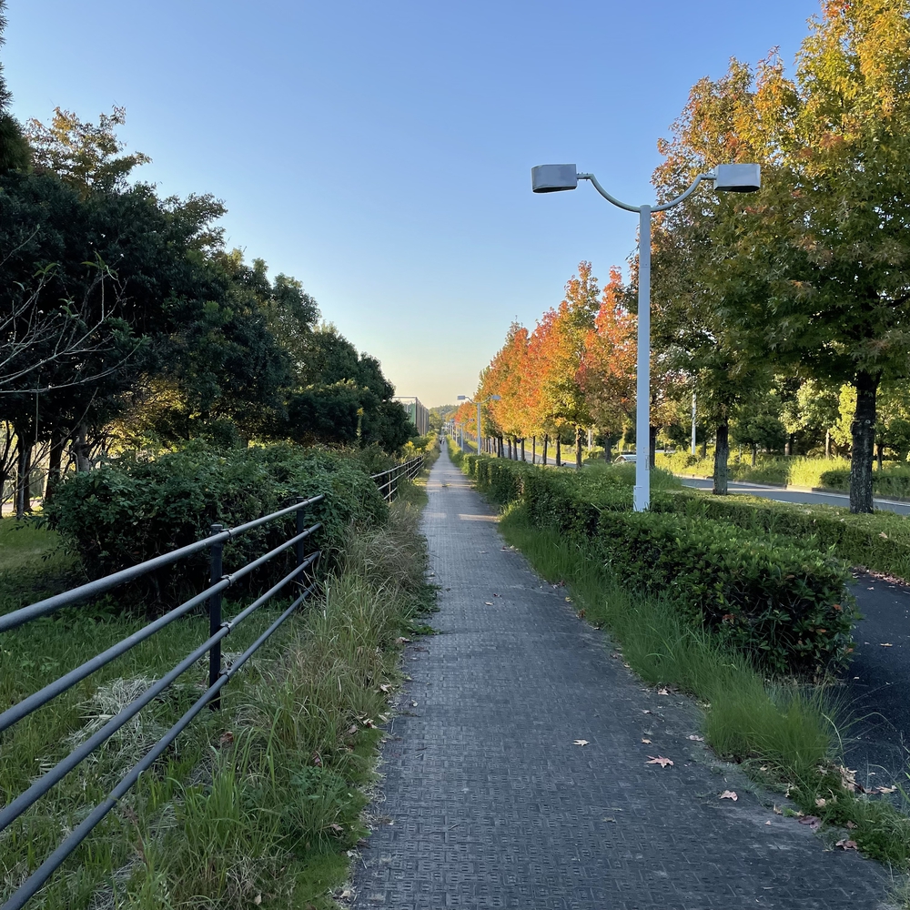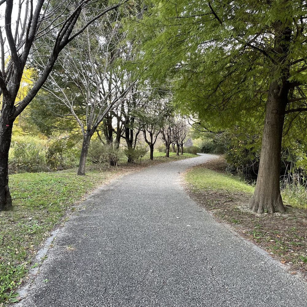 健康の森をスタートとして中を少し走った後、近くの川沿いを走ります。