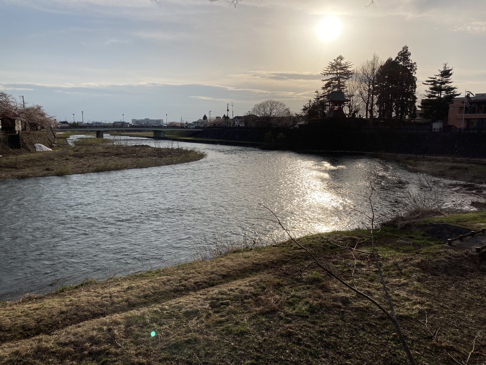 スタート地点は、駐車場の完備された横手城からスタート。そこから市街地を抜けて走っていくと横手川が見えてきます。