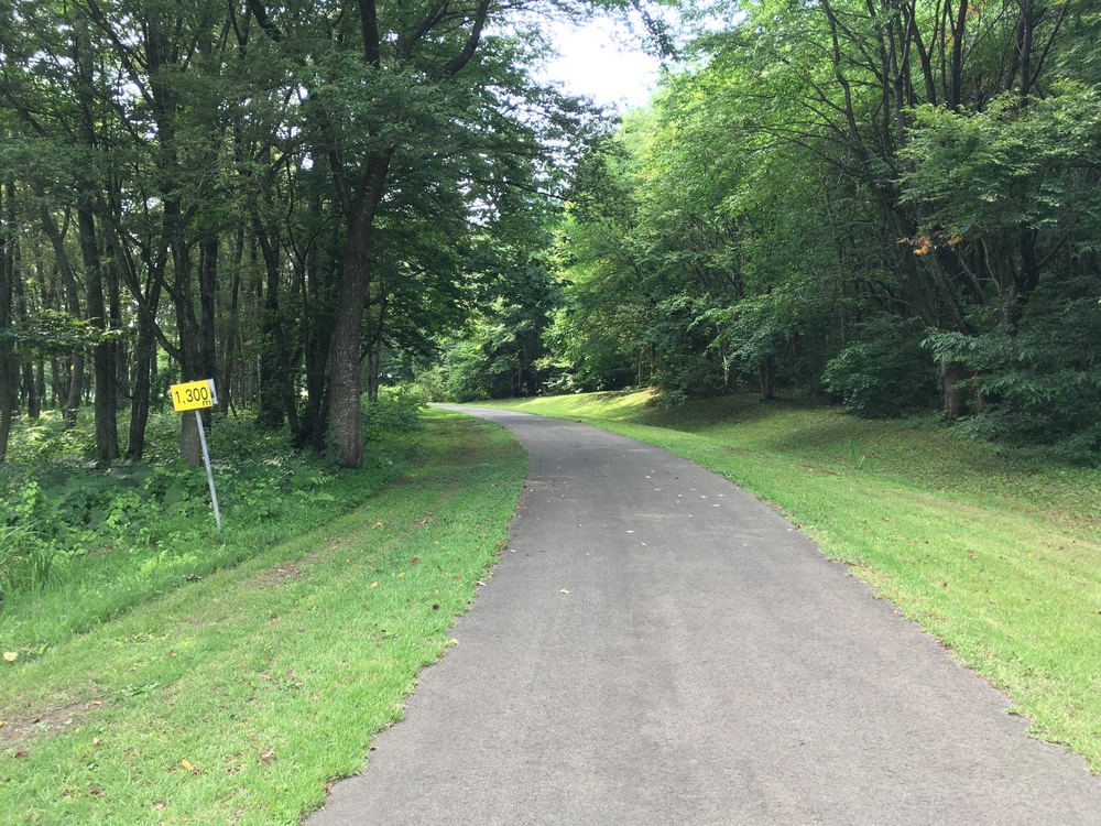 大芝生広場の周りの木立の中を走るコースがお勧めです。木陰の中なので,真夏でも快適に走ることができます。また,このコースを走る限りでは山間部特有のアブや蚊にまとわりつかれることはほぼありません。