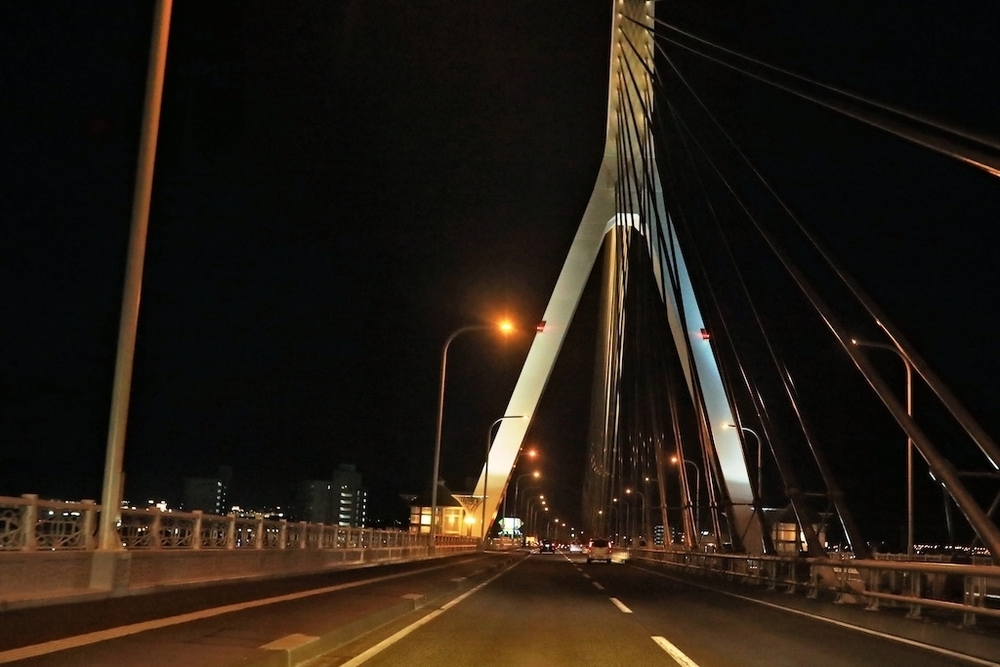 青森駅をスタートして、まずは青森ベイブリッジの西側の入口に向かいます。橋上では日中も気持ちよく走れますが、夜のきらびやかな姿は素晴らしく、ここは絶好のナイトランコースかつ、地元ランナーの人気コースです。その後、青森港エリアを横目に合浦公園に向かって走ります。