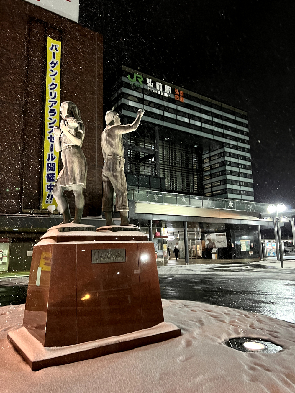 吹雪の止んだ早朝。皮膚が締まる研ぎ澄まされた冷気の中の白銀ラン。ふかふかの新雪の上は踏み締める感覚快適。弘前公園の外周から内周それぞれ周回の後、五重塔まで足を伸ばして弘前駅戻りでゴール。