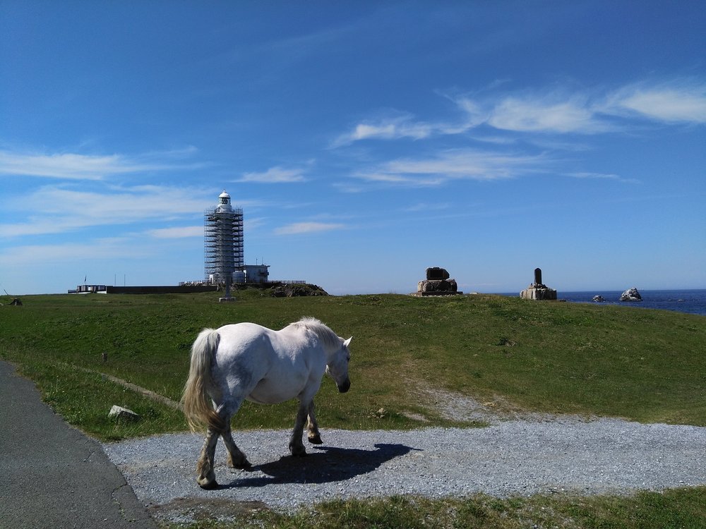 放牧された寒立馬を見ながら、海沿いを走る絶景コース。一周は9kmほどの適度な距離。