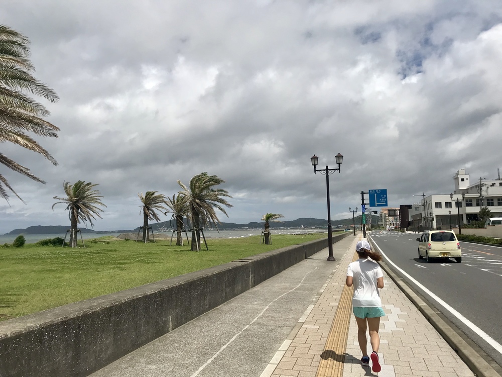 半周が2.5kmなのでランニング初心者の方でも安心です。信号が、1箇所もなく、海を眺めながら止まることなく走ることができます。