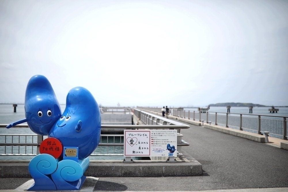 南スペインの町並みをイメージさせる、館山の往復5kmのシーサイドコースです。ランニングステーションとして利用できるカフェのSEA DAYS前をスタートし、まずは南に進んで館山夕日桟橋を目指します。桟橋からは文字通り夕日を綺麗に眺めることができますが、橋の真ん中にはウミホタルの「ブルーフレイム」のモニュメントがあり、この場所は恋愛成就スポットとして知られています。