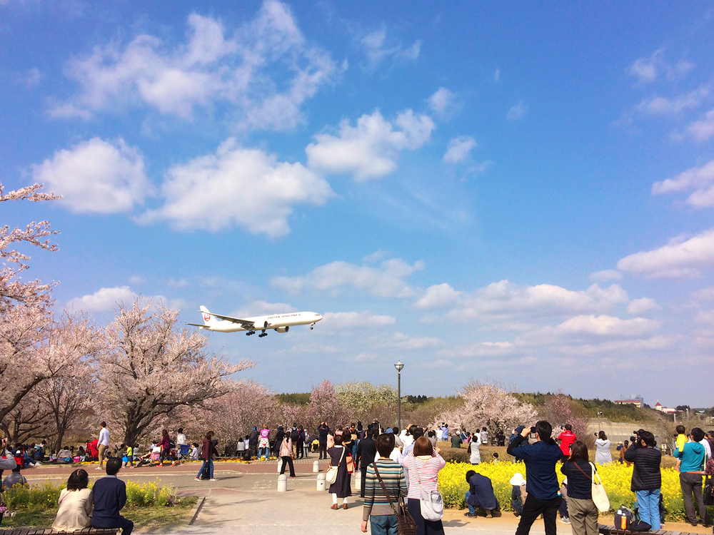 さくらの山公園は、頻繁に離発着する飛行機を間近で観る事が出来るスポット。春先は桜の名所として沢山の人が訪れ、ちば眺望100景にも選ばれています。