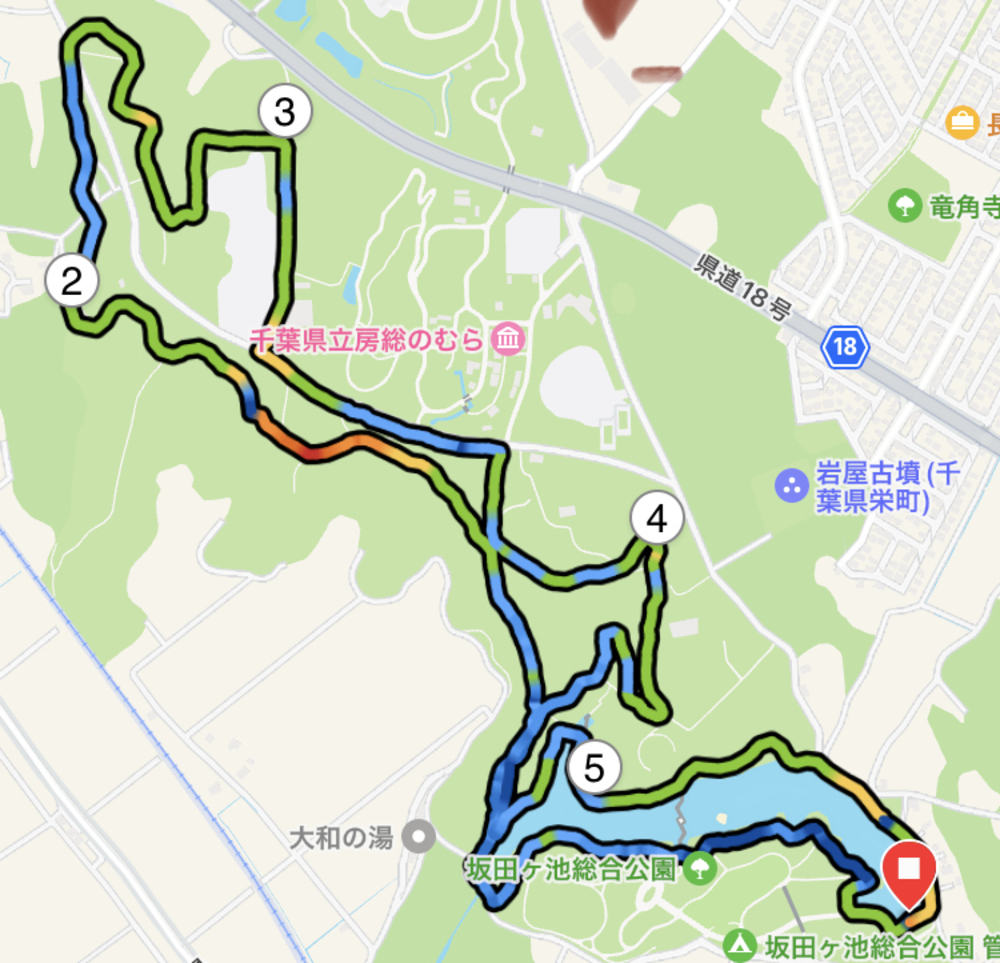坂田ヶ池周辺は散歩している方がいますが、県道18以北は殆ど人がいませんし夏場は草木が生い茂っているので走り辛く1人だと心細いかも知れません。