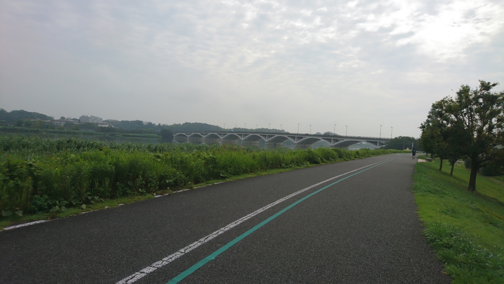 手賀沼フィッシングセンターの自販機で給水した後、今度は我孫子側の遊歩道を走ります。柏側と比べると道幅は狭いですが、良く整備されています。