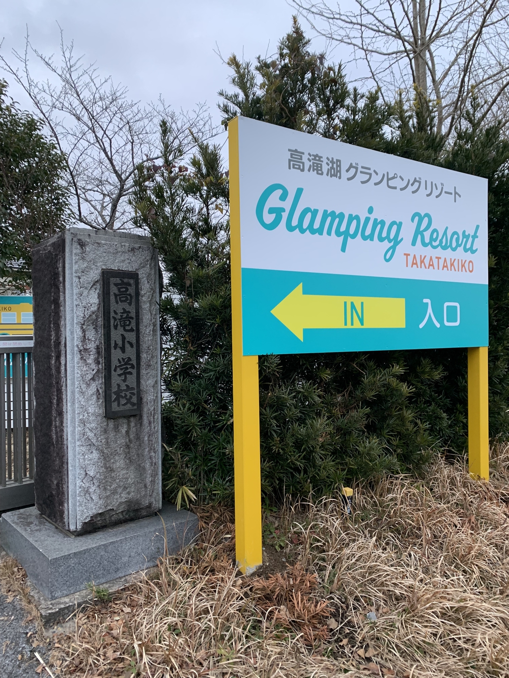 高滝湖グランピングリゾートは廃校の小学校跡地で、体育館は遊べる施設としてそのまま活用、校舎にトイレやシャワー、貸切風呂があり、とてもキレイです。