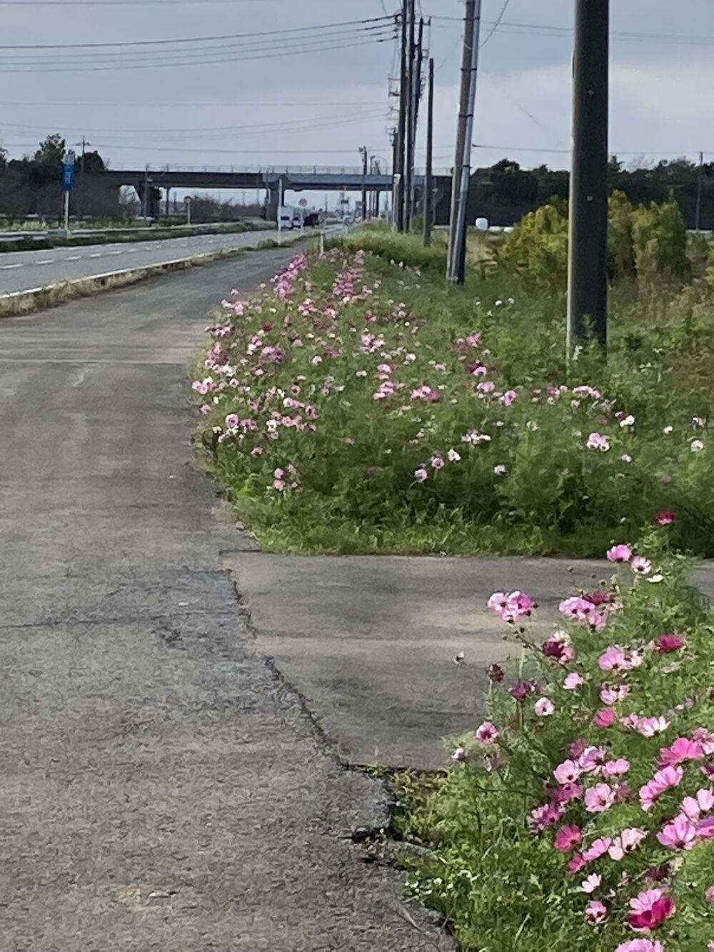 袖ヶ浦駅からフラワーラインを通って野里のローソンくらいまで行って帰ると大体ハーフになります。フラワーラインは、秋ならコスモスが道端ずっと続いて咲いており特に気に入ってます。夏は青々とした水田を見つつ、冬なら真っ青の空の下、広い農地の中をずうっと真っ直ぐ続く平坦な道です。西向けに走れば、冬で好天であればけっこう富士山がよく見えるのにも驚く。