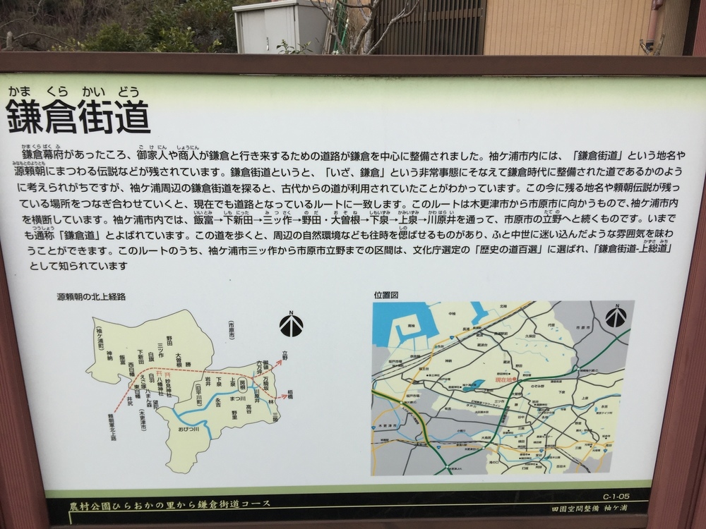 鎌倉街道は鎌倉時代に御家人や商人が鎌倉へ往来するために整備された道で、現在は袖ケ浦市三ツ作から市原市立野まで繋がっています。