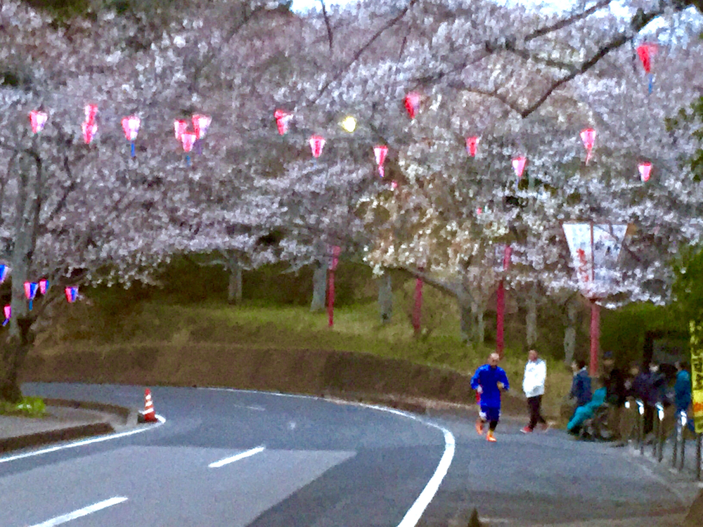 小見川城山公園の駐車場からスタートします。桜の開花期は人通りも多いため、早朝ランをオススメします。コースは駐車場を出て右折、千葉県道44号成田小見川鹿島港線沿いの歩道を成田方面に走ります。竜谷バイパスの坂道を登りきって信号で折り返し。来た道を戻り、最後は公園の桜を見ながら坂道を登り降り。全体で10キロ程のコースです。成田方面に向かって、右側の歩道を選んで進むと信号機の横断が片道2回(内1つは押しボタン式)で済みスムーズに走れます。途中には2箇所のコンビニがあります。