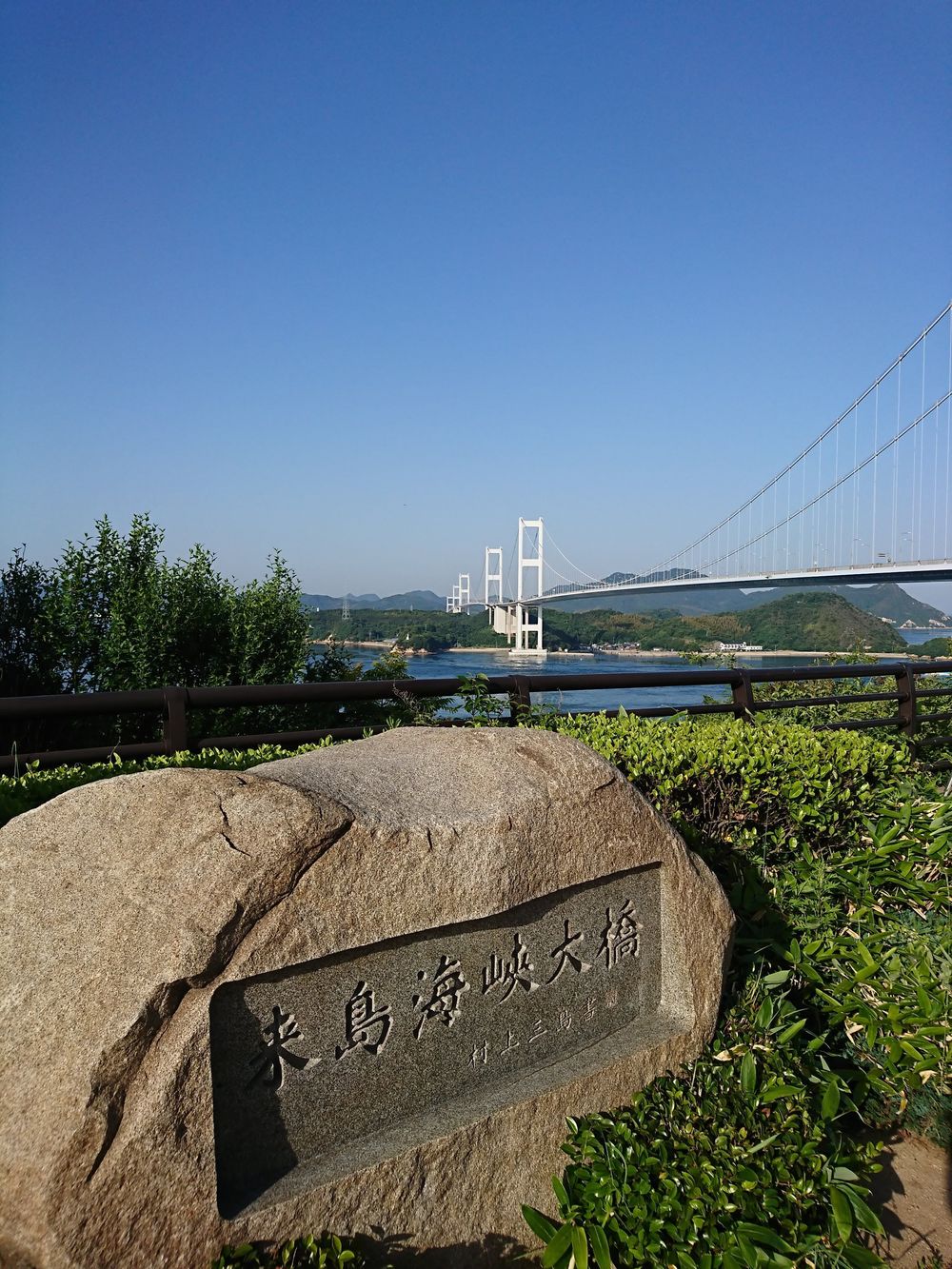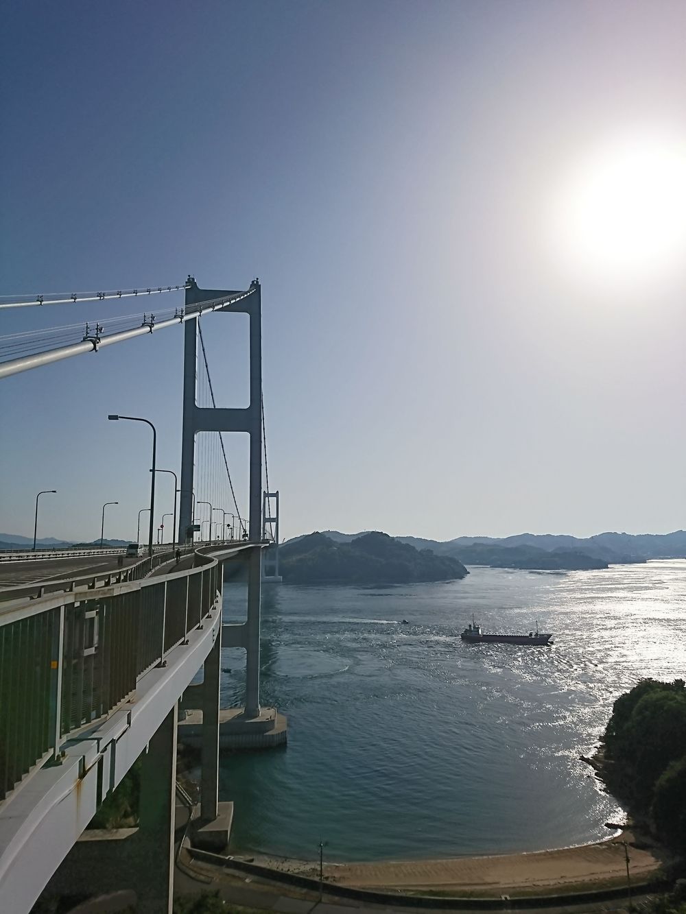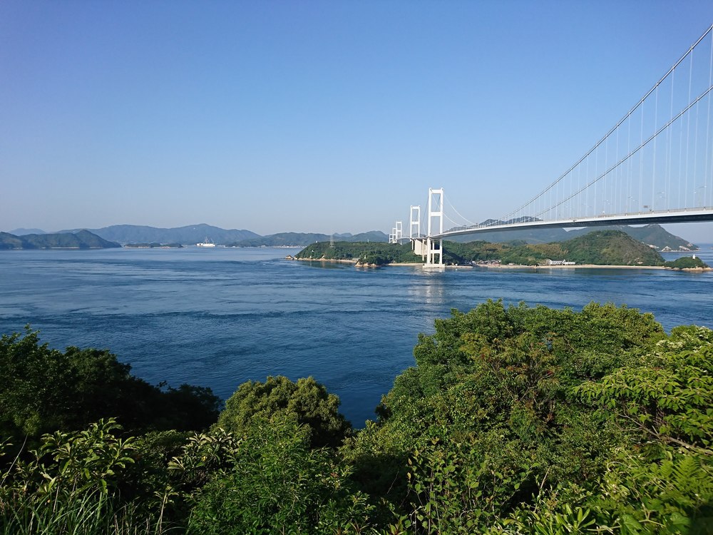しまなみ海道 尾道~今治を走るランニングのクライマックスとなる来島海峡大橋。今治に入る手前、大きな吊り橋からの瀬戸内の絶景ポイント。橋の途中、尾道から走ってくると60km超となりますが、ここだけ楽しむならば馬島バス停で途中下車すて走ってもいいです。春・秋がお勧めシーズンかと思います。