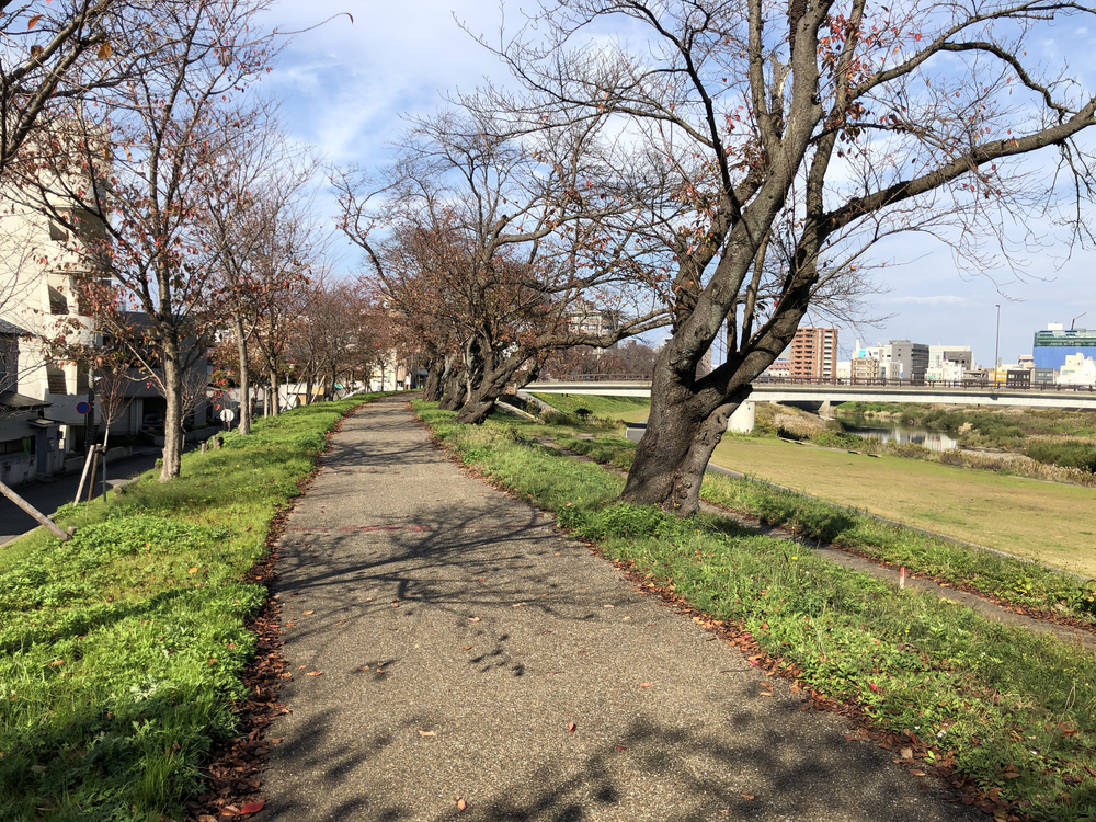 街の中心部から、朝倉遺跡まで長い距離を楽しく走れる気持ちの良いコース