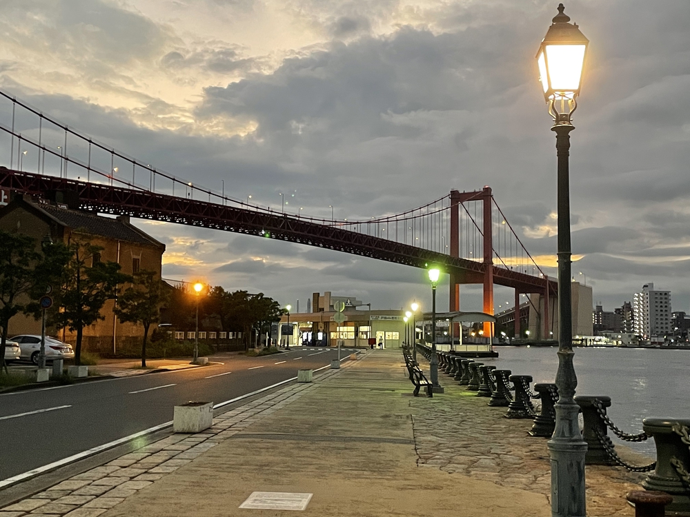 二島から若戸大橋まで海沿いをジョギングしました。景色をみながら走るとストレス発散できます。