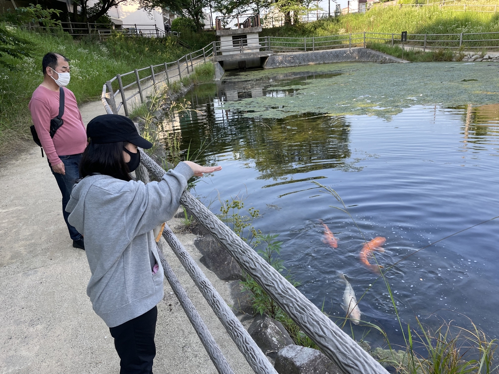 鯉がいる池周りをランニングします。