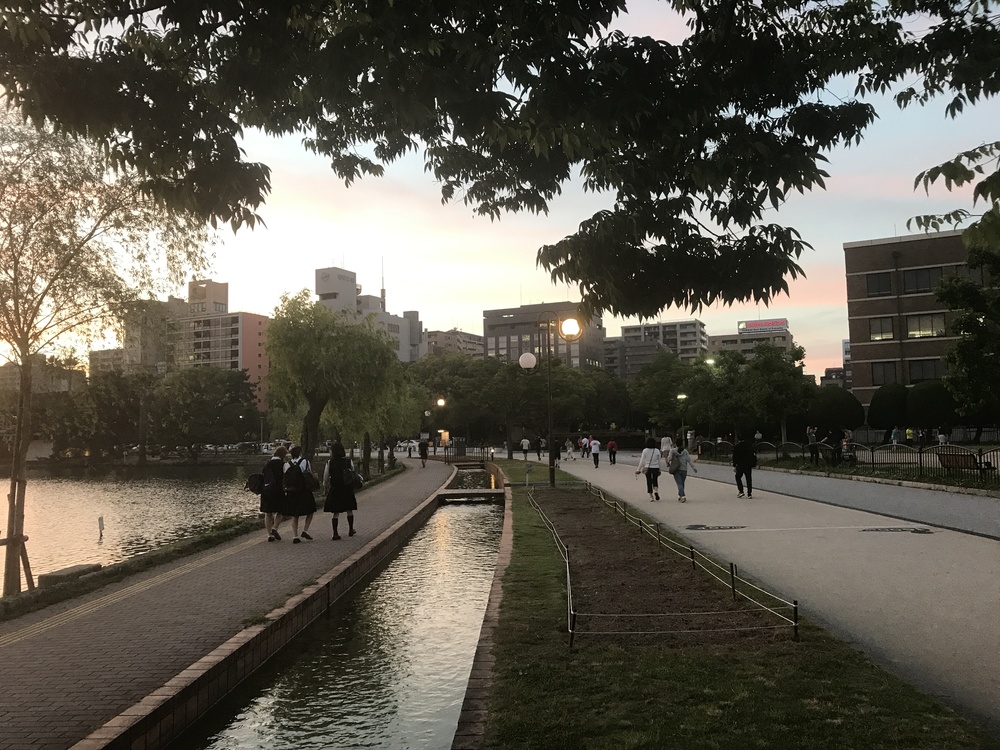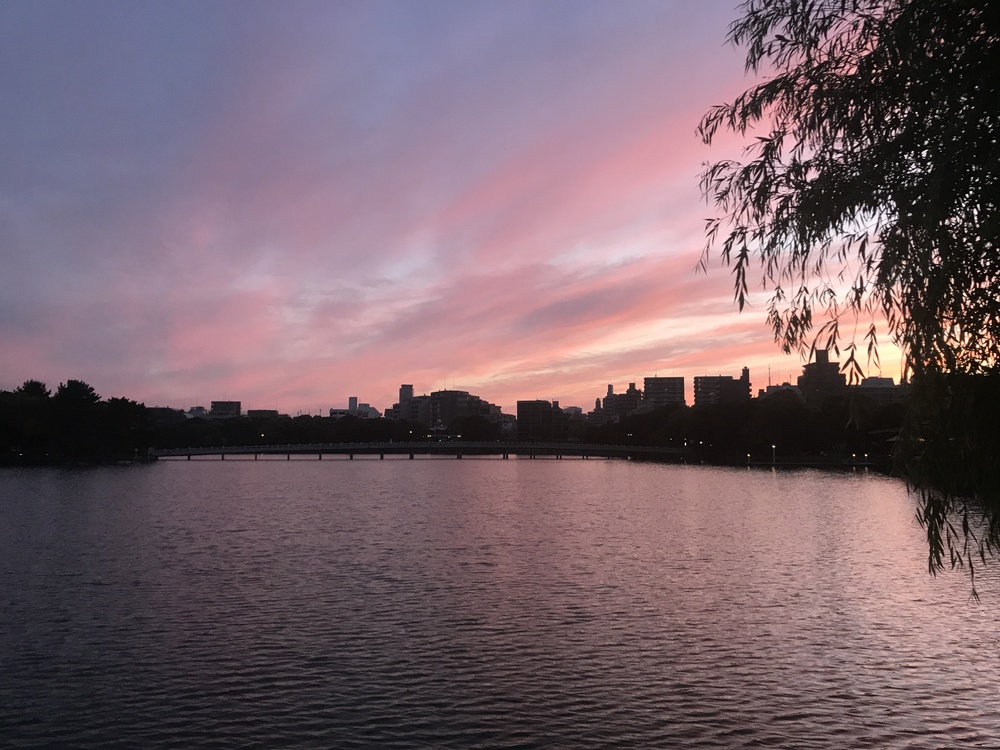 1周2kmのコースはフラットで路面に距離表示もあり、多くのランナーが走っているのでいつもより頑張れたりもします。距離とペースを意識しながら走るのもいいですが、気のいくままにのんびりと空や水辺を眺めながら走るのもこの日は夕焼けがとても綺麗でした。