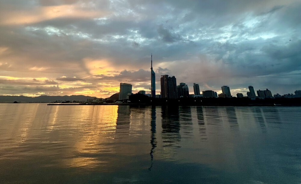 愛宕浜から、福岡タワーと日の出を見ながら、海辺ラン。