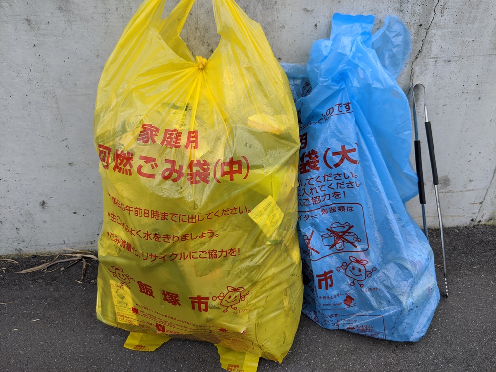 車両通行止めの道路(一応、歩道もある)を以前、ランニングした時、歩道や道端に落ちているゴミが気になった。梅雨の合間の日曜の朝にも関わらず、近くのデイサービスのスタッフの方たちがボランティアでゴミ拾いしていたのを思い出し、ウォーキングがてらごみ拾い。