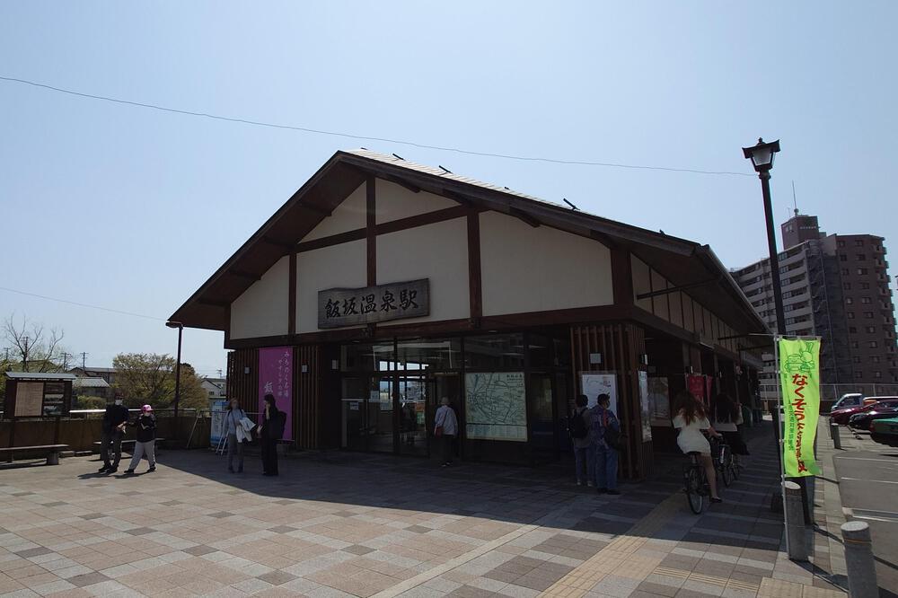 飯坂温泉駅(福島交通)→飯坂温泉観光協会(観光案内所)→なかむらや旅館→旧採進堂酒店→鯖湖神社→鯖湖湯→oncafe→旧堀切邸→奥の間・坐忘庵→飯坂八幡神社→花ももの里→大門の湯→飯坂支所学習センター(花桃の公園)→夜蚊坂→古舘公園→波来湯→飯坂温泉駅