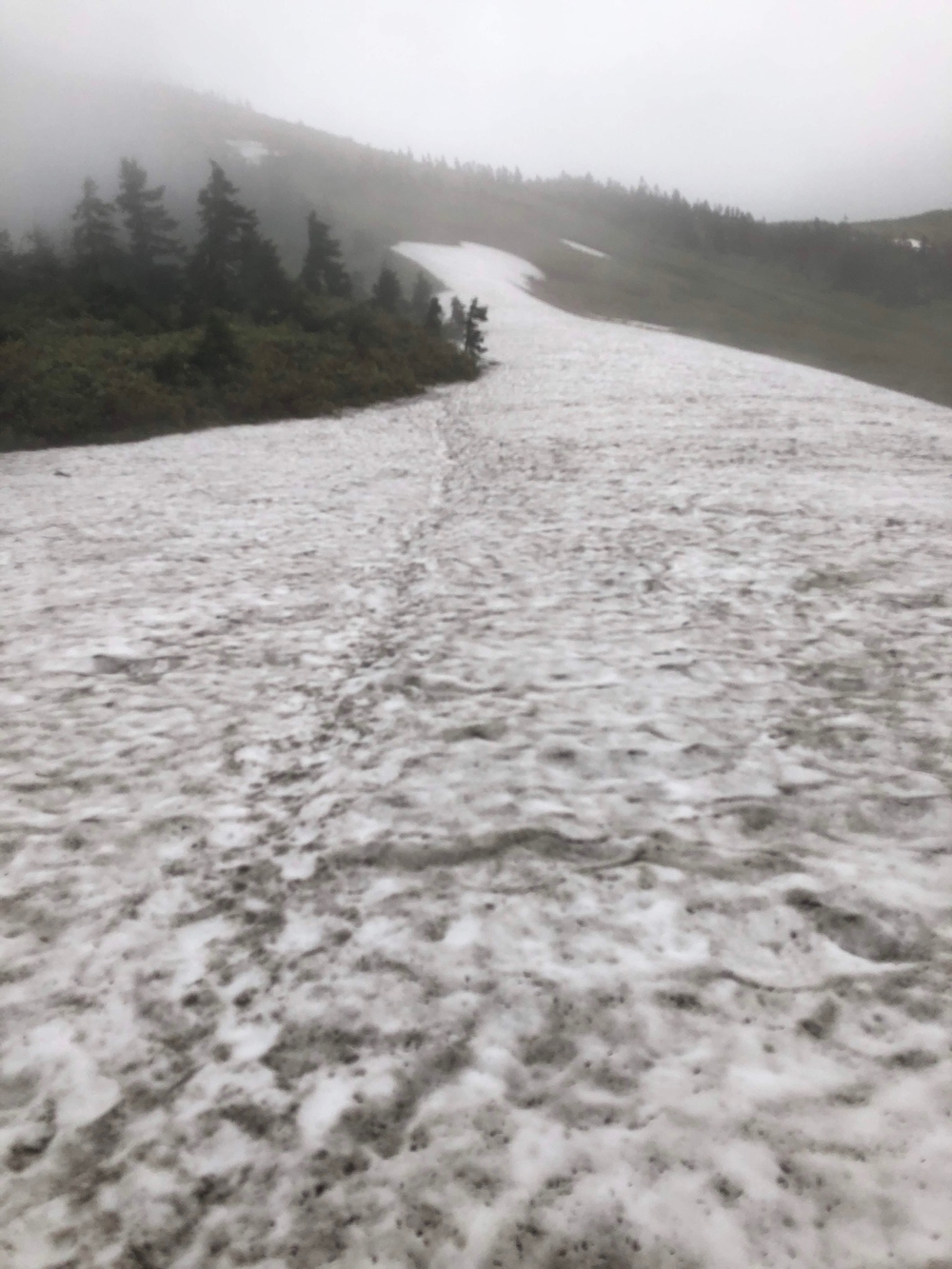 駒ヶ岳山頂近くと、中門岳までは雪渓が残っているが、普通のシューズで通行可能です。