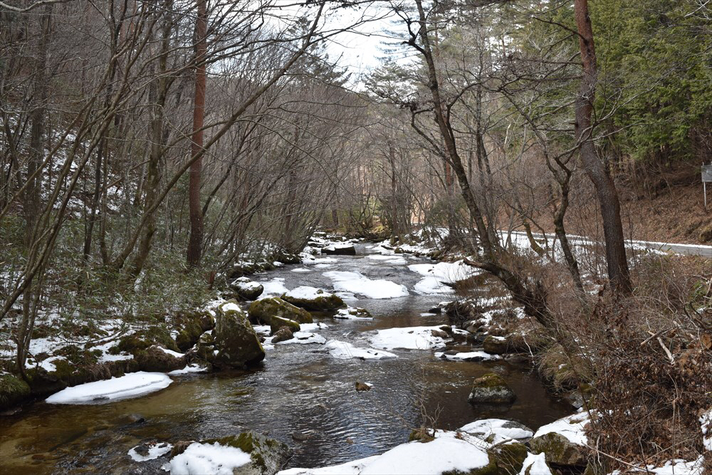 川内村の第四区集会所の駐車場から裏山を上り、モリアオガエルの生息地として国の天然記念物に指定される「平伏沼」まで回って下りてくる上級者コースです。コースと並走して流れる千翁川は、地元でも愛される抜群の清流です。懐かしい物語のような世界を堪能すべく、途中まで走って折り返すコースとしてもおススメです。