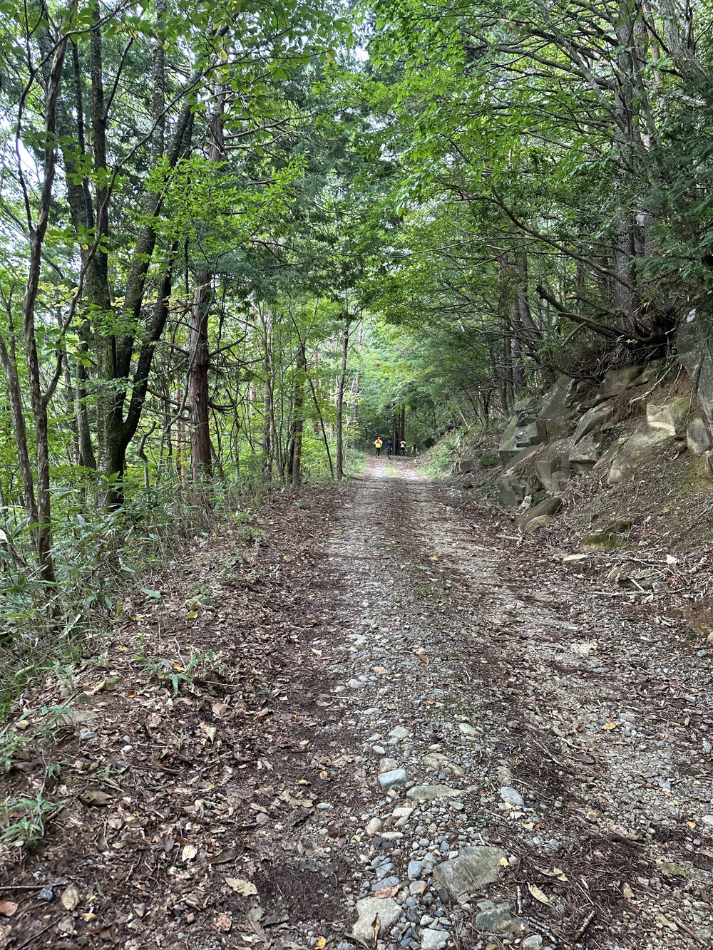 前半は林道の上り坂を5km、そこから登山道に入り1.5km登り、頂上からはゴールまで下り坂なので気持ちよく走れます。