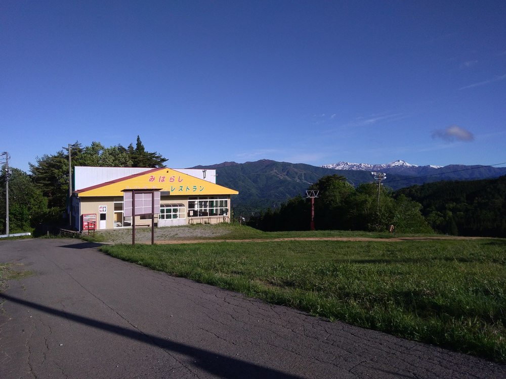途中の道をスキー場方面へ。スキー場の中腹にでます。