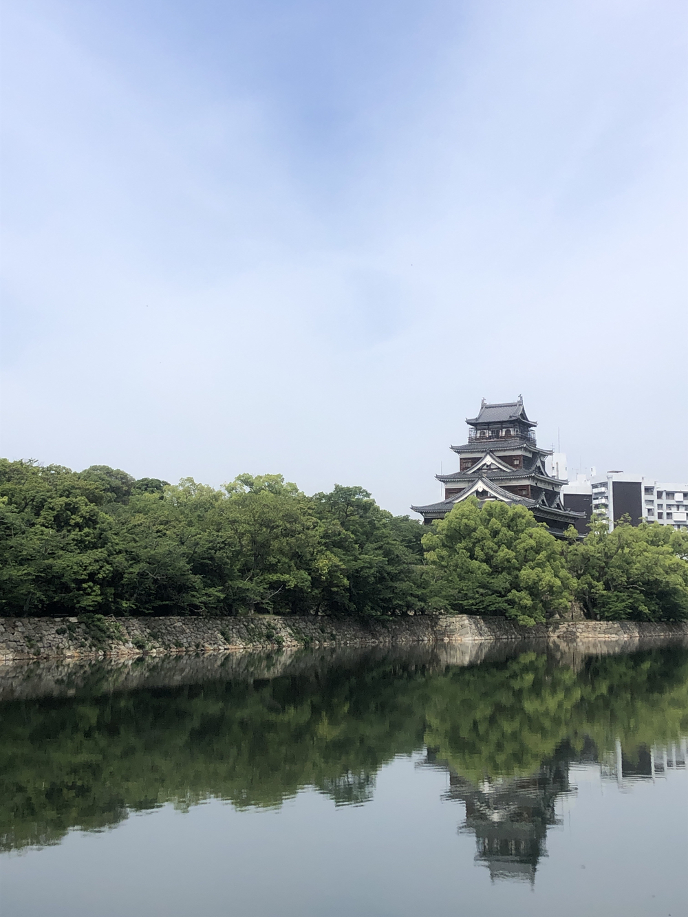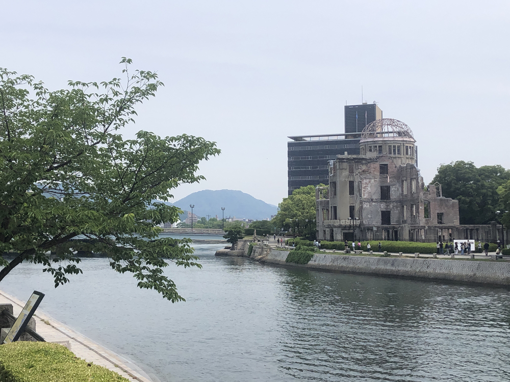 広島駅の北側から太田川を北上し、橋を渡ったら南下します。