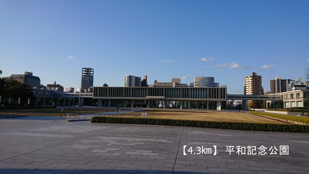 広島駅南口を出発して、まずは歴史を感じる西国街道に沿って、「猿猴橋」「京橋」を渡ります。城南通りを広島城を右に見ながら進み「空鞘橋」の手前を川沿いに南下します。原爆投下目標となったT字橋「相生橋」を渡り、原爆ドームの袂の「元安橋」を左に見ながら平和記念公園内を進み、平和大通りに出たら、イサムノグチがデザインした「平和大橋」を渡ります。元安川沿いを南下し、千田公園側へ曲がって、原爆投下直後の写真で有名な「御幸橋」を渡ります。