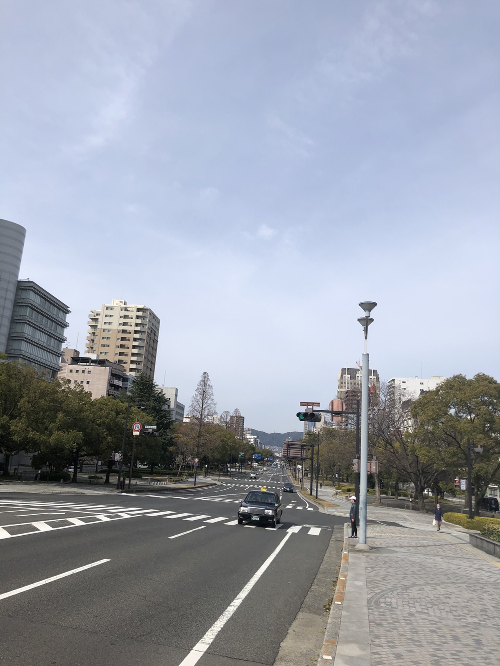 広島の中心を東西に貫く平和大通り、毎年開催される都道府県男子駅伝のスタートとゴールのある平和記念公園を通過するコースです。今、原爆ドームは補修工事中で足場が、掛かってて写真映えしないのでやめました。