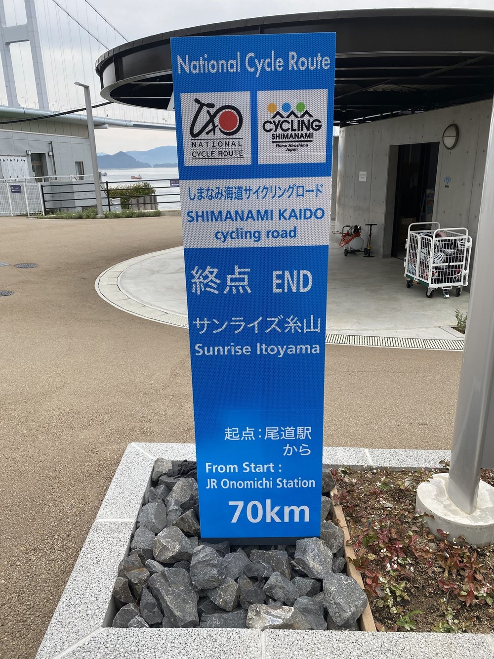 ルートには自転車用にずっと距離表示が道路に記載されてますが、この距離表示は今治駅前まで続いているので、余裕があればゴールをそちらにしてもいいでしょう!