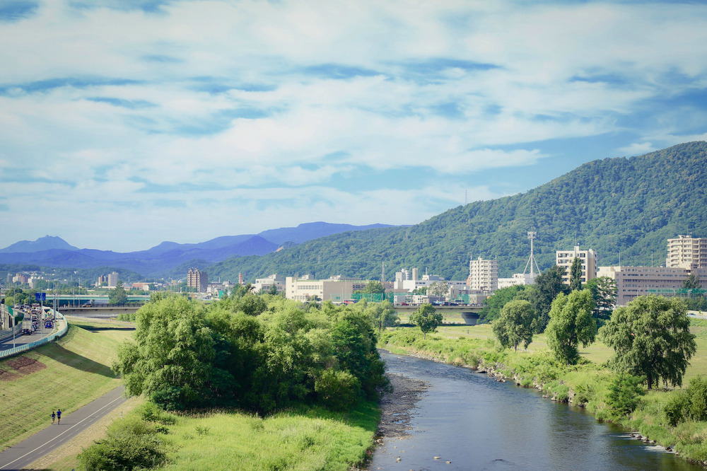 札幌市街の中心地から少し南にある、北海道マラソンの序盤のコースでもある中島公園の脇を南下し、豊平川に向かいます。