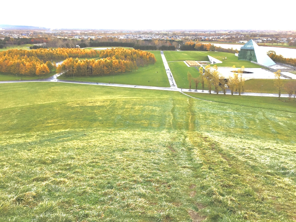 イサムノグチ監修のモエレ沼公園、パス停から橋を渡り外周、公園内通路を走ったり、モエレ山に登ったりといろいろな走り方が出来ます。