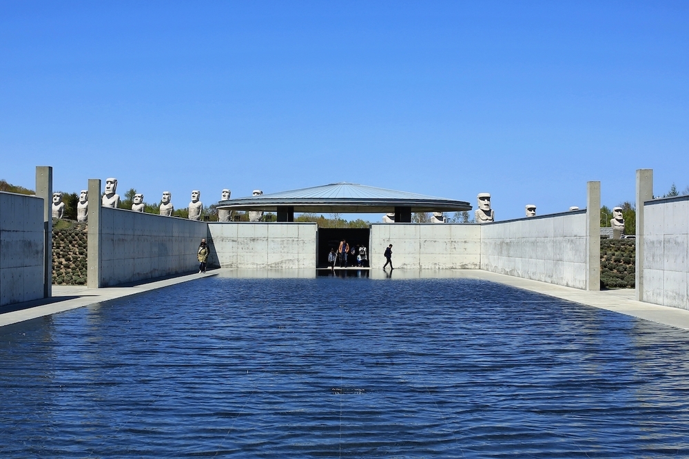 というわけで行ってみたが、まずは正門を入ったところの左にずらりと立ち並ぶモアイ像。これだけでも見応え十分である。総面積180万m2の敷地内はジョギングをするには最適である。とはいえ、いきなり刺激が強すぎるので一度外に出てみる。