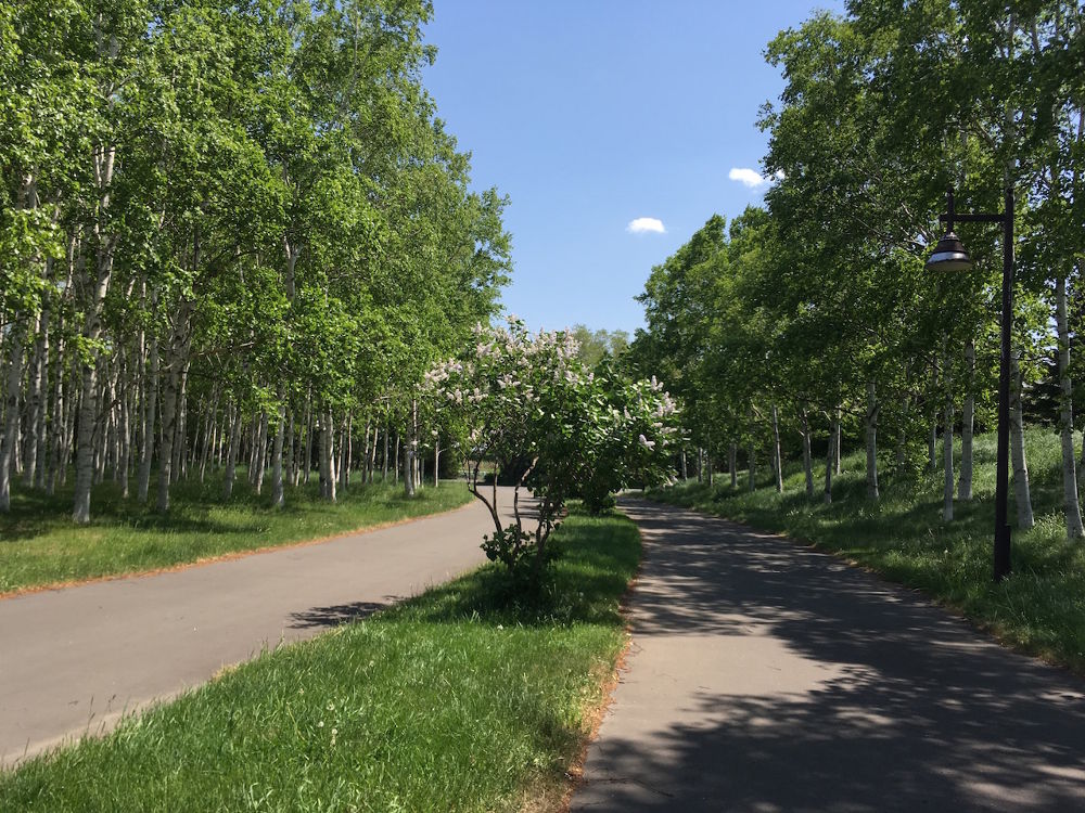 緑溢れる公園はとても気持ちよく開放的。木陰は夏場でも快適に走ることができるでしょう。道が枝分かれしているので、走る道を選ぶことでコース距離をカスタマイズ可能です。園内にはパークゴルフやバーベキュー用のスペースもあり、家族とのレジャーがてら走りに訪れるのも良いかもしれません。