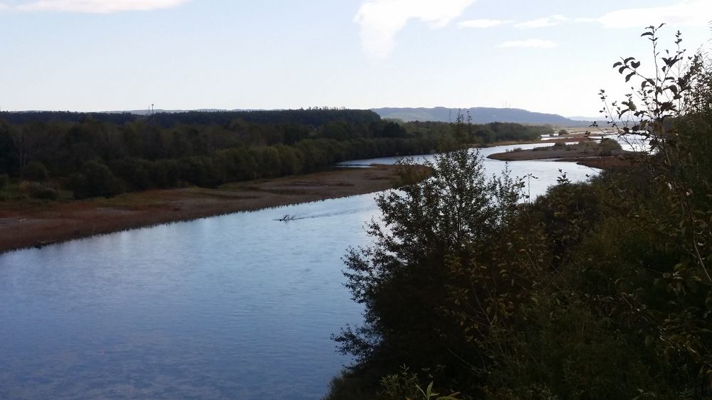 河川敷は空が広くて、北海道らしい雄大な景色を楽しむことが出来ます。ご紹介したのと逆回り(反時計)のコースを走れば、十勝川の遥か向こうに日高の山々を望むことが出来ます。