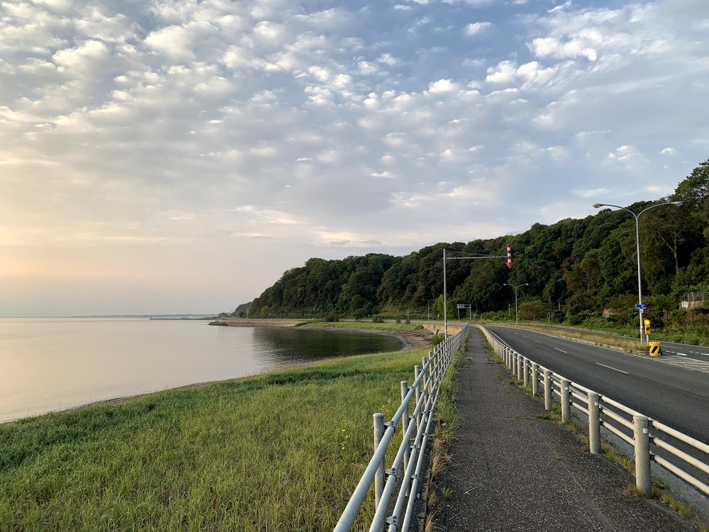 コースは平坦で海側の歩道を行けば信号はほとんどなくほぼノンストップで走れます。