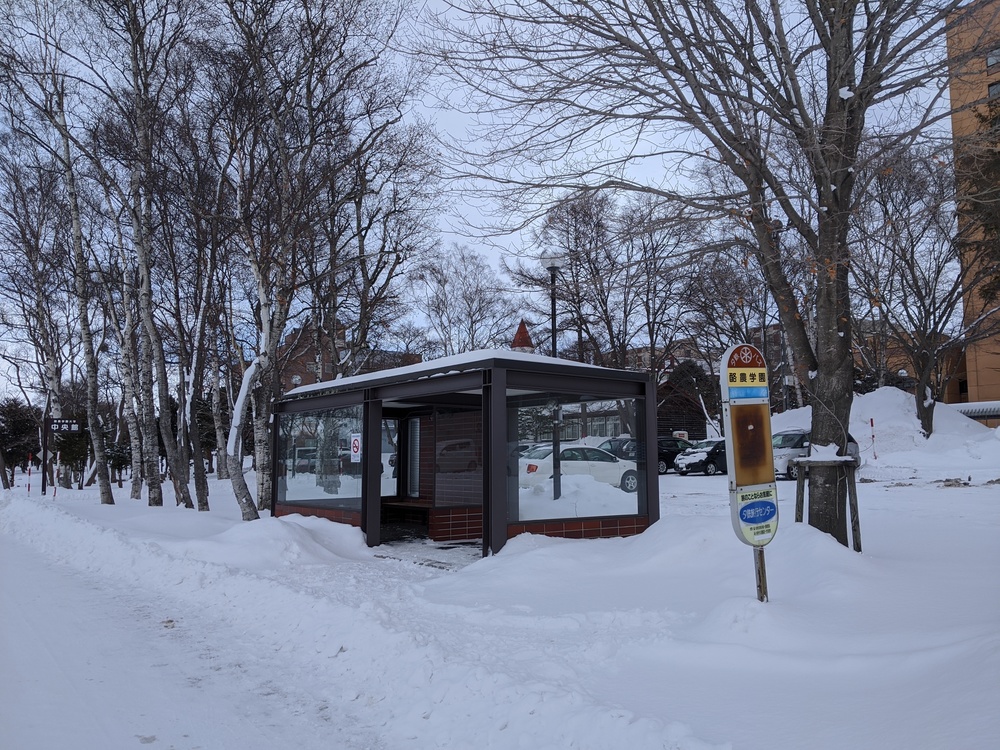 ・江別らしい煉瓦造りの建物も巡れます。立派で歴史的な建物も素敵ですが、個人的には酪農学園大学構内のバス停が好きです。