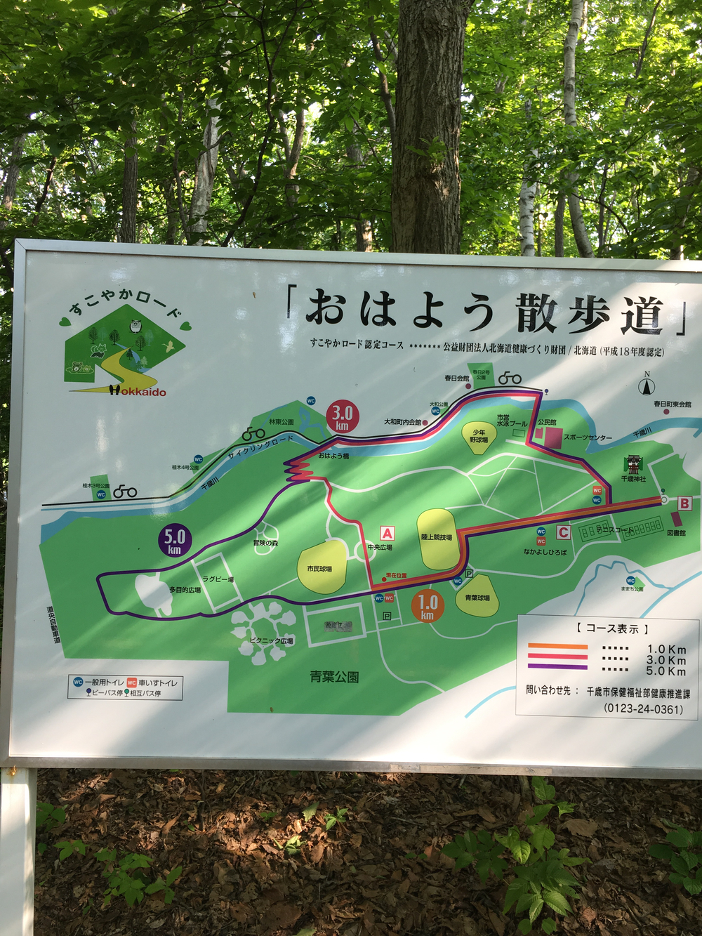 千歳駅から千歳川沿に青葉公園へ、気持ち良いランニングが楽しめます。青葉公園は木陰で整備されたオフロード道が続き快適です。今朝はエゾリスを見つけました。
