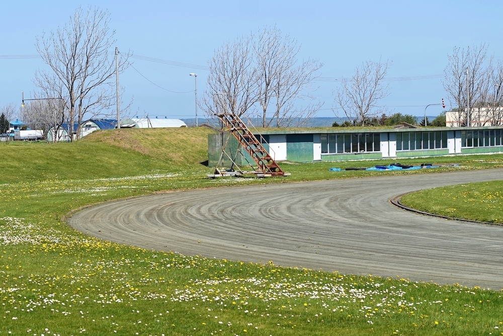 以前、沖縄県の宜野湾市立グラウンドのトラックでクローバーと白いお花畑を素敵と思ったが、沖縄から約2500km離れた北の大地にもそれに似たトラックを発見した。北海道天塩郡豊富町にある「豊富町陸上競技場」は、白と黄色の鮮やかなお花が咲き誇るほのぼのとしたトラックである。