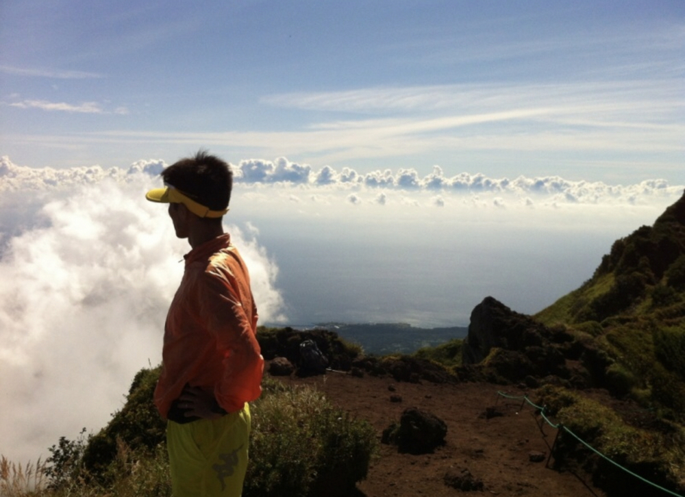 8合目を過ぎると勾配はかなり急になり、時々歩を休める必要がある。直登に近いルートなので休める区間が少ない。9合目に「ここからが正念場」の書いてあったが、自分は9合目までの方がキツかった。