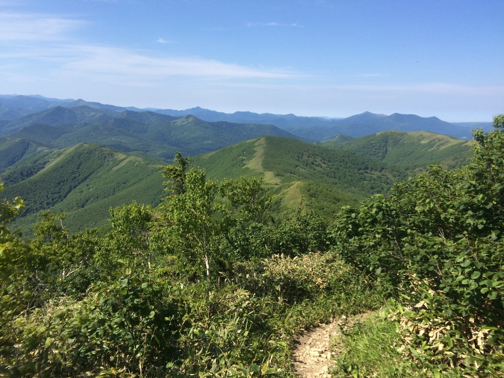 北海道の中央部、新得町と南富良野町境界にある佐幌岳(1059.5m)。標高641mにある狩勝峠登山口から842ピーク、桜山(949m)を経て佐幌岳山頂までのおよそ5kmをずーっと走ることができます。ただ残念なことは夏季はササが濃くなるので、稜線上に残った雪庇の上を走ることができ、天候が安定するGWから5月中旬をオススメしたいです。雪庇の張りだしや亀裂に注意が必要ですが、トレランシューズで問題ありませんでした。もちろん、夏季であってもササ刈りが行われトレイルが整備させますが、肩ほどの高さに伸びたササの中を走ることになります(マダニ対策忘れずに)。佐幌岳山頂からは、雄大な十勝の大地を見渡すことができます。5枚目の写真は2015年7月に山頂から撮影した稜線です。