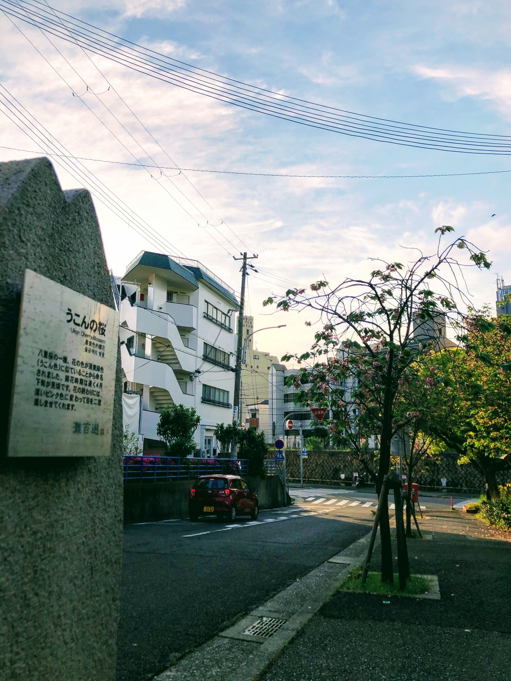 少しキツい、うこんの桜道(四月後半が見頃)を眺め、昼間は人で賑わう水道筋商店街を通り、鬼塚古墳を右手に進み都賀川へ。