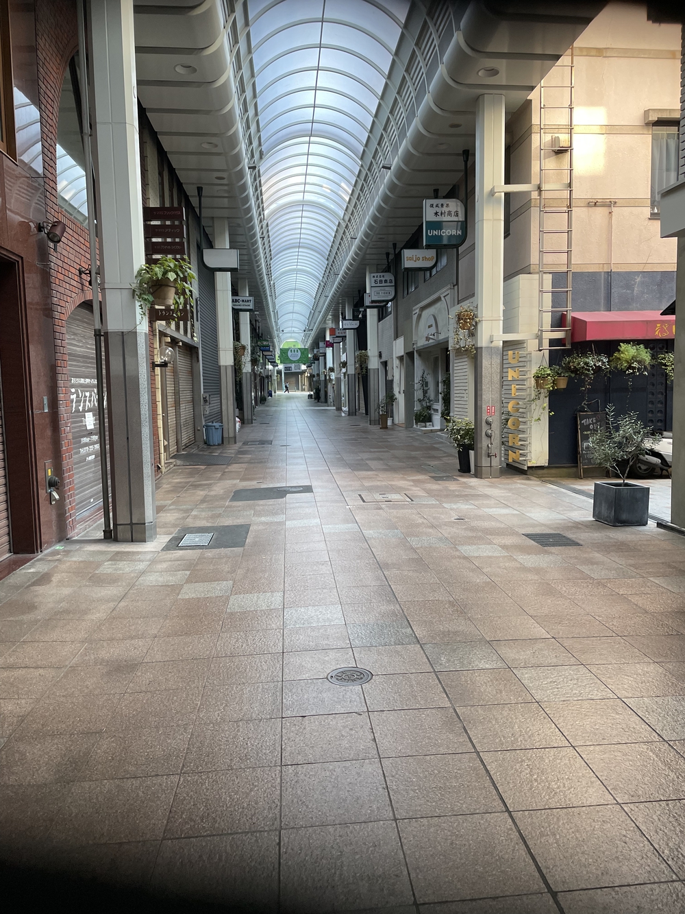 朝の人がいない商店街ラン