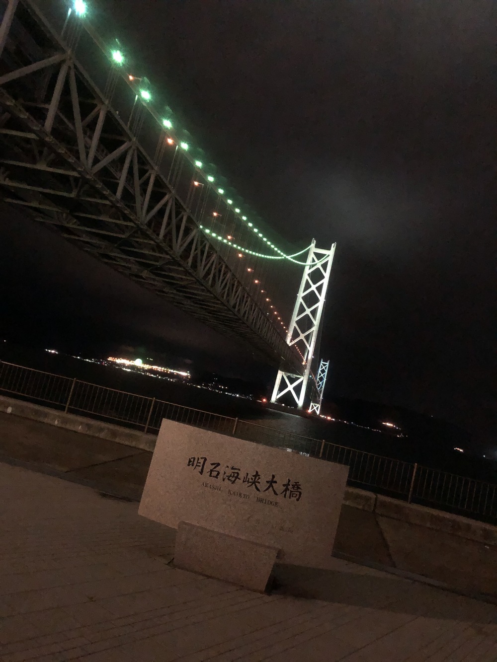 ・ライトアップされた明石海峡大橋や海峡を行き交う船舶を眺めて