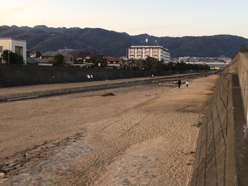 芦屋川はランニング、ウォーキング、お散歩など地元の人達の憩いの場です。